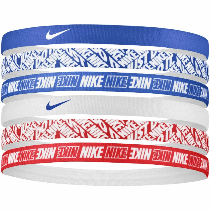 The NIKE Headbands 6 Pack Printed pack includes 6 stretchy headbands, with silicone strip grips for an extra-secure fit.