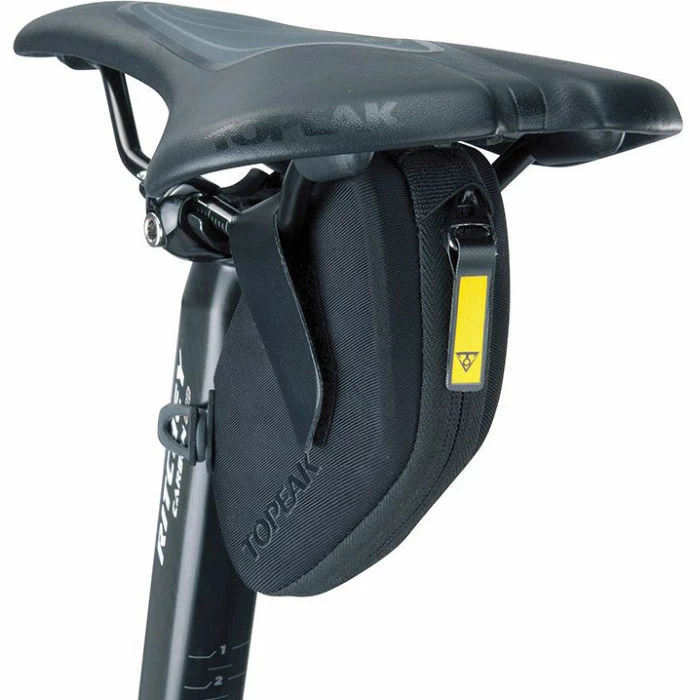 Den Topeak DynaWedge sadel taske er vandafvisende, let og har en unik åbning center for nem adgang til elementer såsom et værktøj, rør og andre fornødenheder. Tasken passer virkelig pænt under sadlen via selvklæbende stropper.